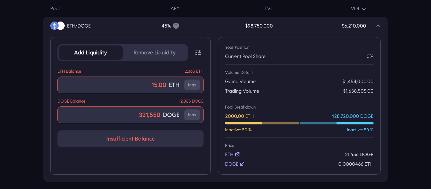 - Approve Tokens: Click "Approve" for each token. This grants the smart contract permission to interact with your wallet.