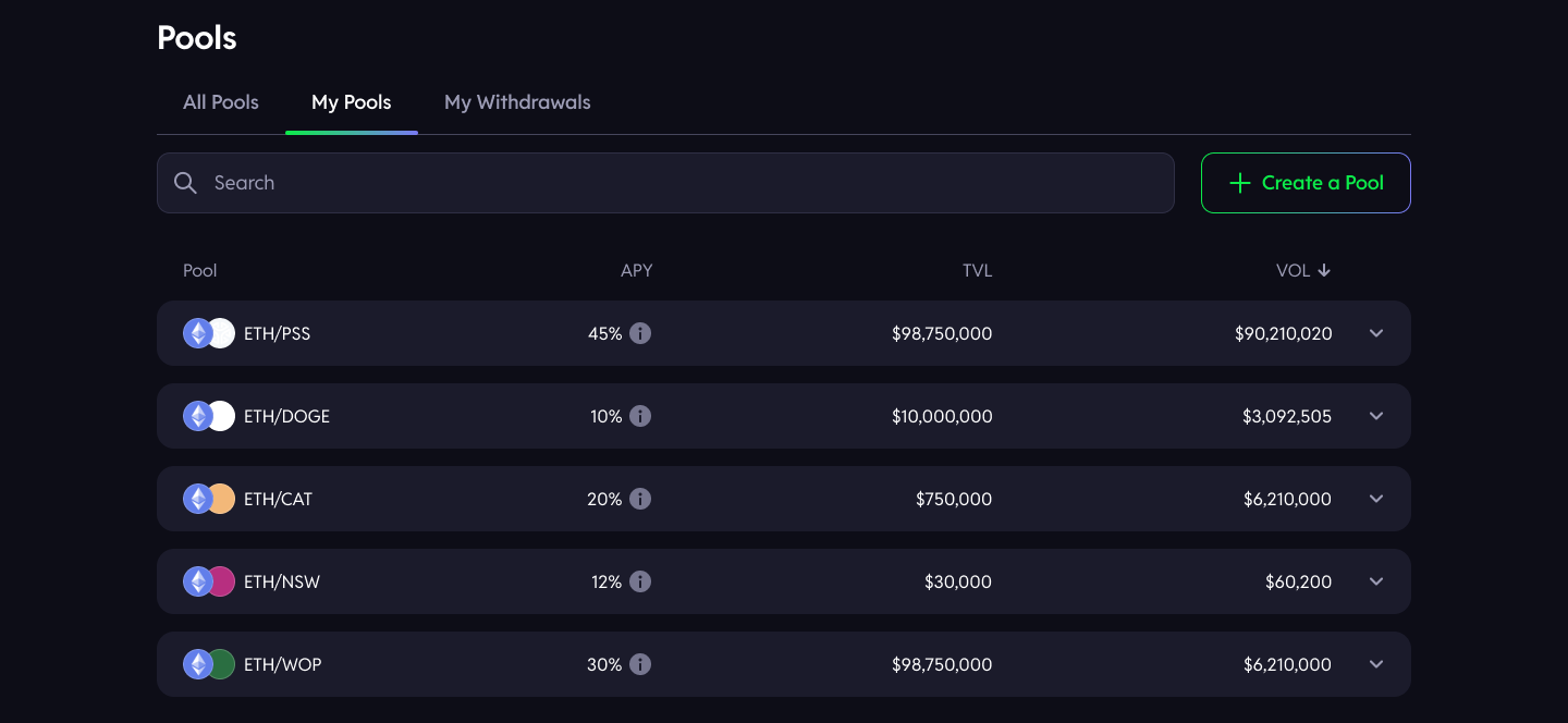Find your desired token pair (e.g., WETH/USDC) within the SKNK Hub Dashboard and click the "Add Liquidity" button.
